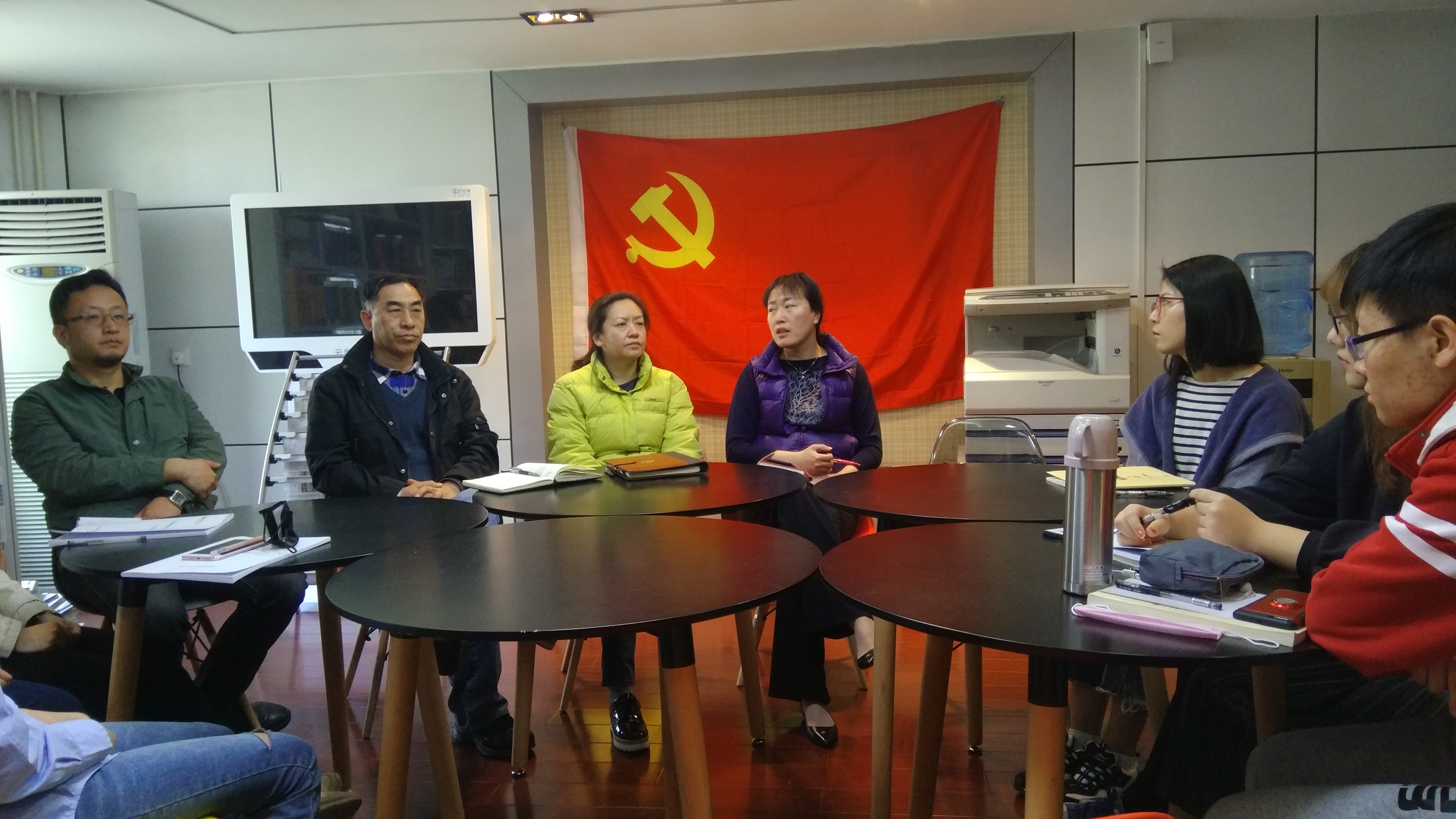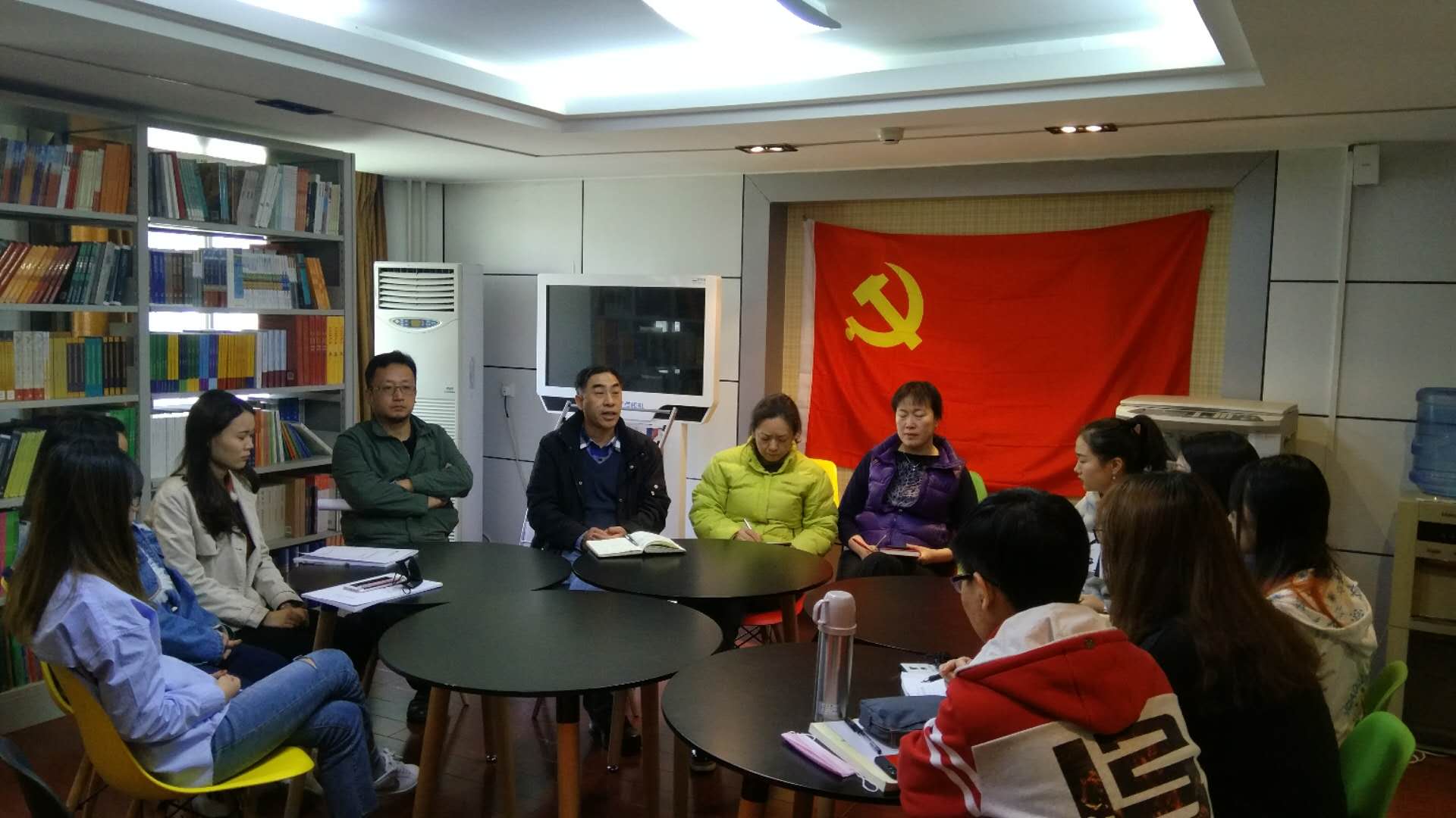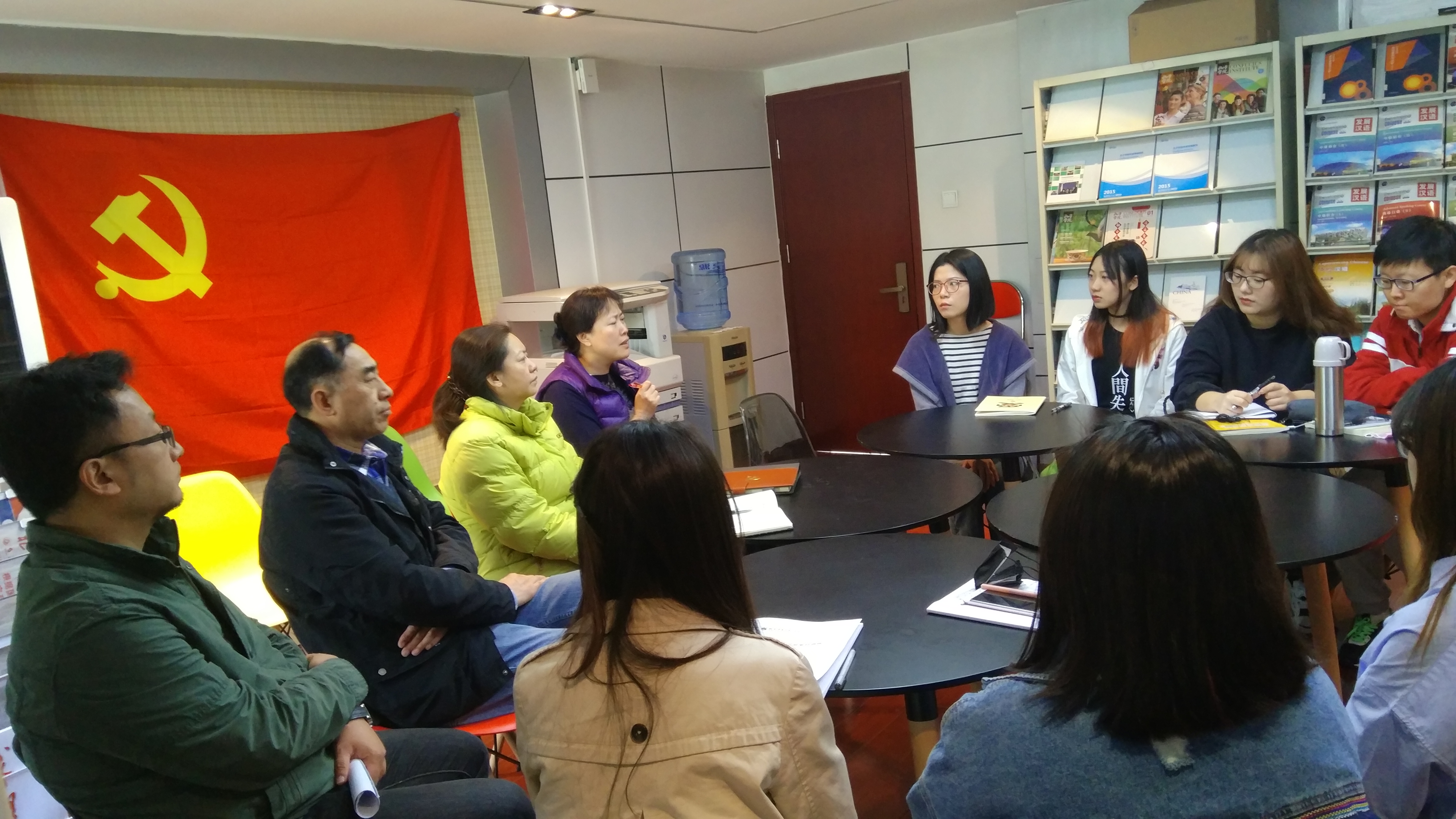 2018年4月12日上午10时,国际文化学院党支部在学院图书室召开了2015级党员发展对象党课学习工作总结会。本次会议出席的有国际文化学院田青院长、党支部书记董梅老师、党支部张世响老师、李滨老师、15级辅导员田梦艺老师以及七名党员发展对象同学。