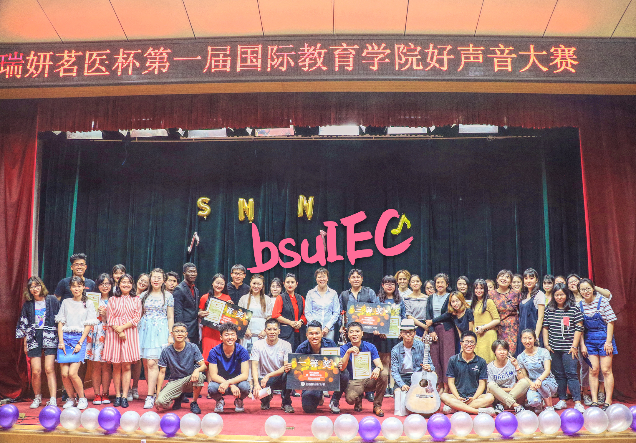 第一届国教好声音落下帷幕 发布时间:2017-05-10 2017年5月9日晚,国际教育学院第一届好声音比赛在大学生活动中心举行。国际教育学院田青副院长应邀出席了本次活动。校园十佳歌手刘毅妍、张希、胡华,吉他社社长韦恩剑,B-Box社社长邓宏远,以及赞助商北京瑞妍茗医皮肤美容科主任李萍担任评委。 比赛在一场英姿飒爽又美轮美奂的双节棍表演下拉开序幕。首先出场的胡馨宇和钱奕豪(中国台湾)用如同倾诉般的歌声演绎了《简单点》。随后吉他的“波浪音”与磁性的男中音搭配表演《我的心里只有你没有他》深深的感染了台下观众。本次国教好声音共有十组参赛选手,每位选手都深情投入,歌声悠扬、舞姿优美,给观众奉献了一场视听盛宴。观众也深深融入现场,一声声的加油口号,也将比赛一次次的推向高潮。随着评选结果的公布,本次比赛也在一片欢乐的气氛中画上了句号。 评选结果如下: 一等奖:刘夕冉&武梨维英(越南)《美人鱼》 二等奖:周祎&晴天(西非多哥)《红玫瑰》 三等奖:林胜概&Christian j gonzàlez c(玻利维亚)《我的心里只有你没有他》 优秀奖:胡馨宇&钱弈豪(中国台湾)《演员》;黎孟强(越南)&贾诗 《美丽的神话》;孙皓璋&川岛直央(日本)《伤心的人别听慢歌》;赵益萱&黎玉庆(越南)《曾经心痛》;胡爱莲&林凡恩(中国台湾)《我真的受伤了》;周恒帆&陈茗玉(中国台湾)《小手拉大手》;马睿&李允范(韩国)《雪之华》