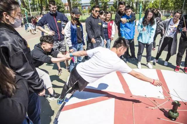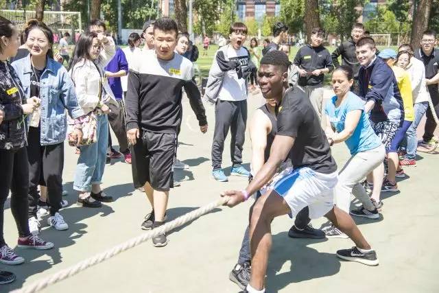 武文弄墨---趣味运动会圆满结束 发布时间:2017-04-27 2017年4月26日,由国际教育学院和武术学院联合主办的「武文弄墨」趣味运动会在篮球外场举行。中外学生进行了一系列中国民族民间传统体育项目的比拼:滚铁圈、投壶、踢毽子、跳大绳、逃脱束缚、拔河等。同学们在体验中国民间传统体育项目中增进了友谊。