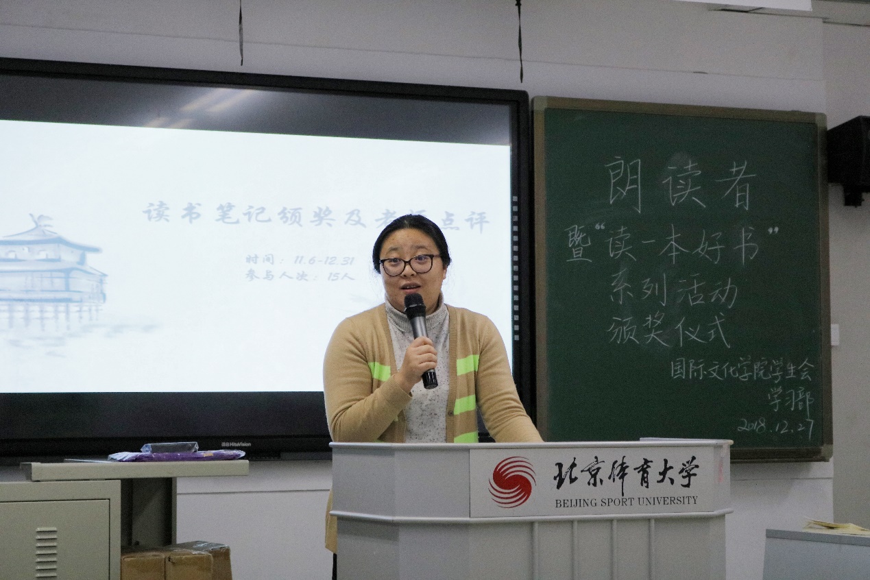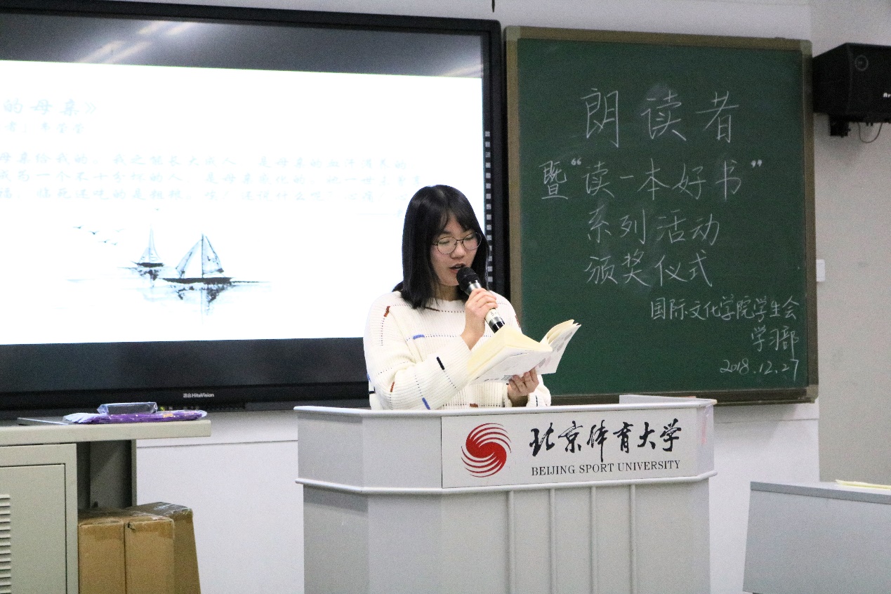 【betway88西汉姆联】朗读者 暨"读一本好书"系列活动颁奖仪式 发布时间:2018-10-30 中国·必威(西汉姆联)·官方网站|BETWAYSPO 自10月29日向全院同学发送邀请以来,一转眼已经两个月了,本学期的“读一本好书”系列活动终于在12月27日晚7点于305教室迎来了它的结束,此次活动除了举行读书笔记的颁奖仪式以外,也成功开展了最初敬请期待的朗读者活动。国文始终与“文化”这个词息息相关,“读一本好书”系列活动便能很好地体现我们国文的特色与魅力。 朗读者 刘依洋《从文家书》 史雪莉《人间最美是清欢》 杨喆《步履不停》 吴俊《愿你迷路到我身旁》 韦莹莹《我的母亲》 惊喜压轴:李滨老师《青春》 为时7周、打卡20次的晨读活动即将接近尾声,每逢晨读日,同学们便不得不早早地从被窝里钻出,冒着北京早晨寒冷的冬风赶往教学楼。如果你偶然经过她们晨读的教室,你一定会有以为自己一秒回到了高中的错觉,朗朗的读书声把人的思绪牵往了那段奋笔疾书的高中时代...... 王珊珊同学作为晨读代表发言,谈了谈晨读活动的最初筹备及最后的成效,还包括晨读活动接下来的改进,作为晨读活动的切身参与者,她说:”集体的力量是强大的,大家互相鼓励、相互支持真的会走得很远。” 王珊珊 乔东鑫老师 乔东鑫老师作为此次活动的特邀嘉宾之一,首先对各位朗读的同学的具体表现,包括文章的选取、朗读的技巧等方面,做出了专业性的评价和建议。并宣布史雪莉同学在此次朗读者活动中更胜一筹。 紧接着,即将公布激动人心的读书笔记获奖名单,在包括乔东鑫老师在内的三位老师的共同商议下,决定 三等奖获得者:李崧豪、刘依洋、蒋雯慧、蔚洁冰、郑登远二等奖获得者:王珊珊、韦莹莹一等奖获得者:王郁琪 恭喜以上获奖的同学,希望大家再接再厉,借由读书笔记这个活动看更多的书,以此养成阅读的好习惯。 颁奖仪式 活动结尾学习部部长陈嫣然 活动的最后,学习部作为“读一本好书”系列活动的筹办者,其部长陈嫣然进行了对此次活动的总结,闪光点与问题并存,为接下来活动更好地开展,她也给出了自己的计划与安排。 下一学期,期待更多的参与者,我们风里雨里等着你! 图片/刘灏云文字/史雪莉编辑/王欢