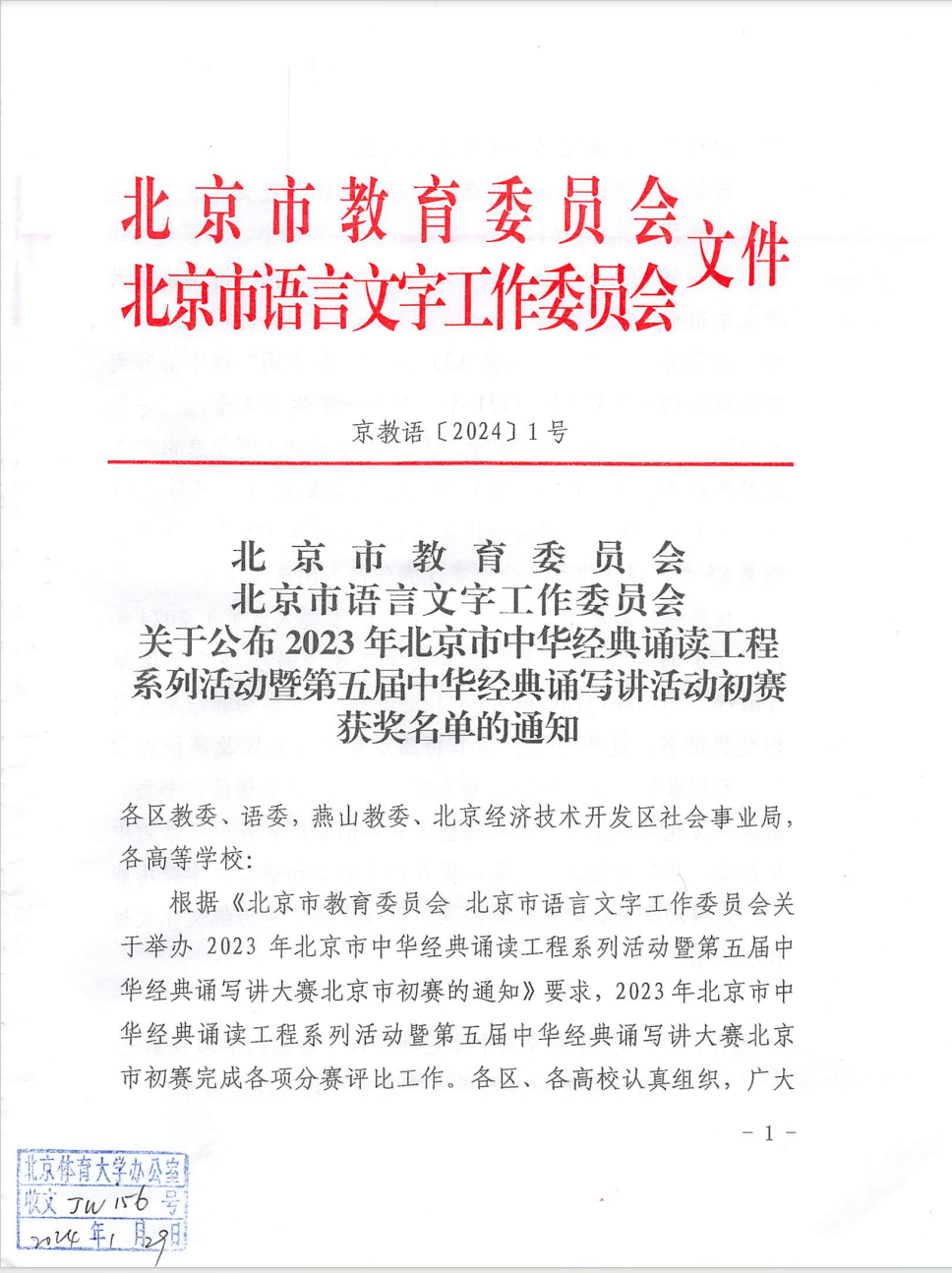 2023年北京市中华经典诵读工程系列活动暨第五届中华经典诵写讲大赛北京市初赛完成各项分赛评比工作。各区、各高校认真组织,广大师生积极参与,涌现出一大批优秀作品。