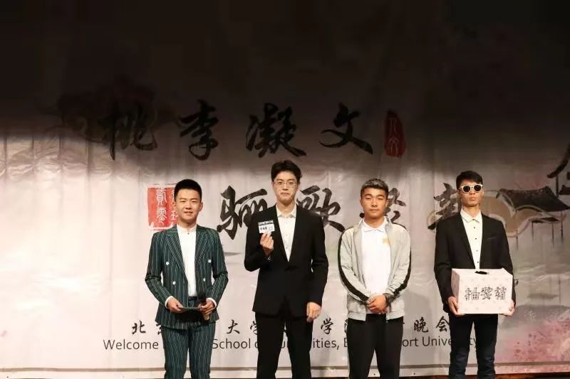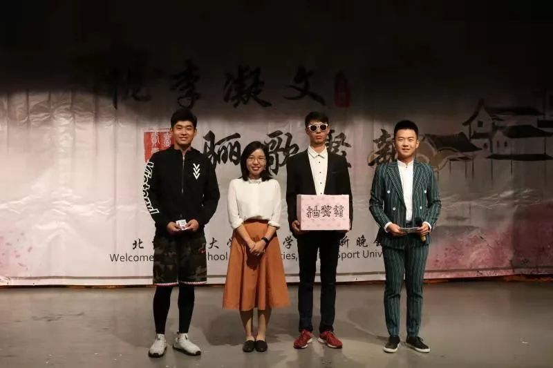 晚会的抽奖环节来啦!共有三位幸运的同学被晚会抽中,免费获得了优仕恒量身定做的西服一套~