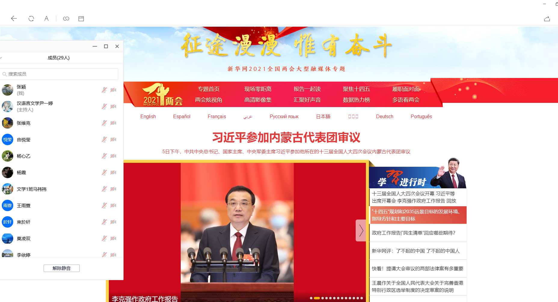 2021年3月5日,betway88西汉姆联2020级汉语言文学班团支部组织了线上集体学习“两会”及《政府工作报告》重要内容。团支部同学积极参与了此次会议,学习过程有序、认真。学习会议结束后,同学们还纷纷对本次学习内容写下了自己的感想。