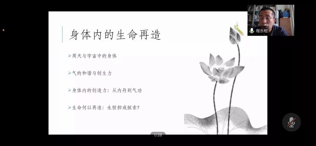 程乐松教授先是分析了“躬亲”与“坐忘”的概念,即“躬亲”表示身体的现场,“坐忘”表示浑然的忘我。这二者恰是中国文化身体实践的两端,一方面投身于经验,一方面把精神世界的自我彻底消解。这两种极端提供了观察性,认识世界,认识自我,体悟被自我遮蔽的世界是怎么样的。