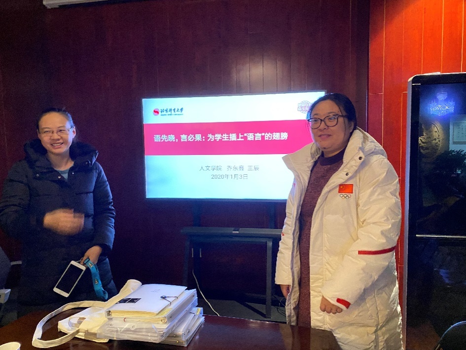 接下来由乔东鑫老师和王辰老师汇报“语言与生活”课程,,她们的题目是“语先晓,言必果:为学生插上“语言”的翅膀”。两位老师分别通过精准而诗意的语言以及生动的案例展示了这门课程的目的、内容、方法和意义。该门课程采用了课堂讲授和小组讨论相结合的形式,除了“引进来”,更“走出去”到博物馆参观甲骨文展,借用媒体资源紧密结合当下最新话题做现场分析,增加了趣味性和实用性,提高学生的实际运用能力,并通过专业而形式多样的汉语学习,增进了学生们对本国文化的了解和热爱。